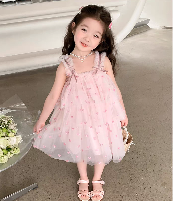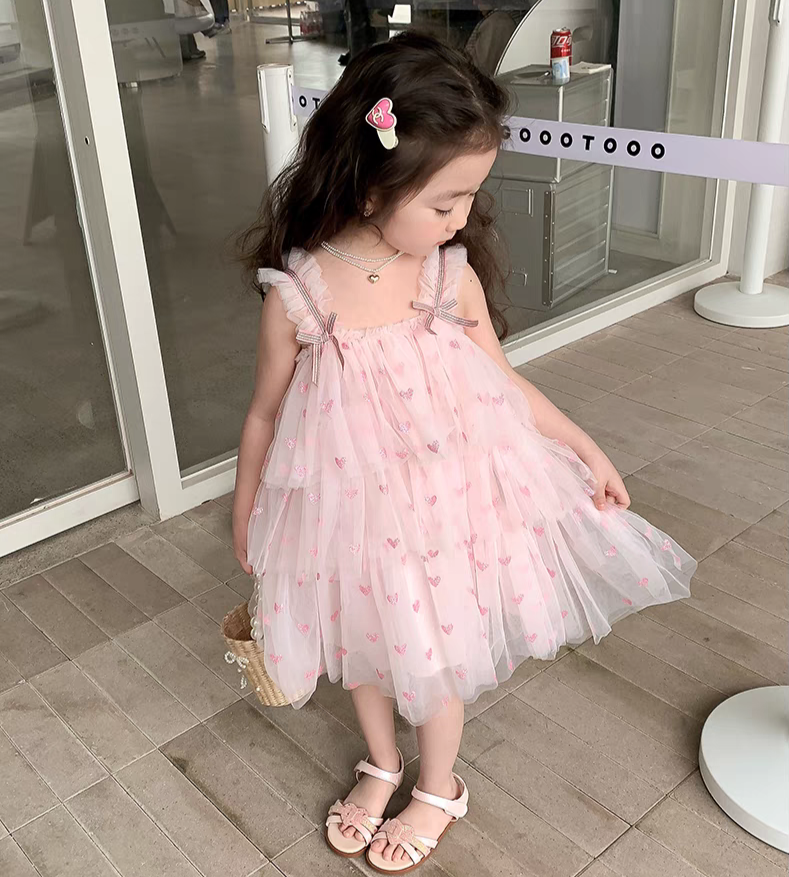 Design: Sleeveless dress with layers of tutu and pink hearts design